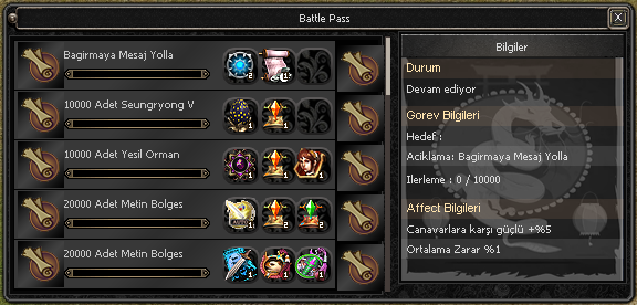 | Yaygın Evrim +10 STR | 1x Kırmızı , x1 Mavi , x1 Mor x1 Yeşil ot ve Evrim Metali karşılığında yapılır 50m yang ister |