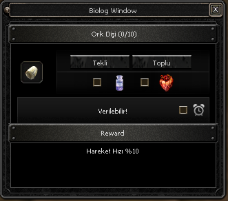 | Seyrek Evrim +30 STR | 2x Kırmızı , x2 Mavi , x2 Mor x2 Yeşil ot ve Evrim Metali karşılığında yapılır 50m yang ister |