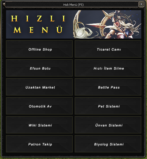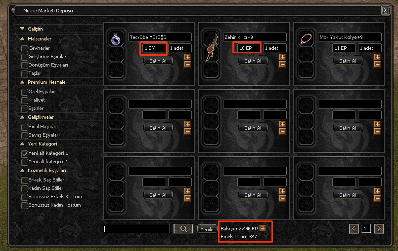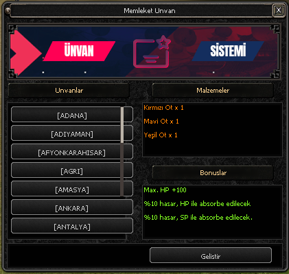 | Nadir Evrim +50 STR | 3x Kırmızı , x3 Mavi , x3 Mor x3 Yeşil ot ve Evrim Metali karşılığında yapılır 100m yang ister |