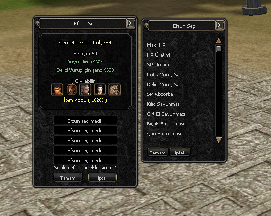 250 | Oyun içerisinde elde edilebilir. İstediği itemler boss ve metinlerde bulunur |